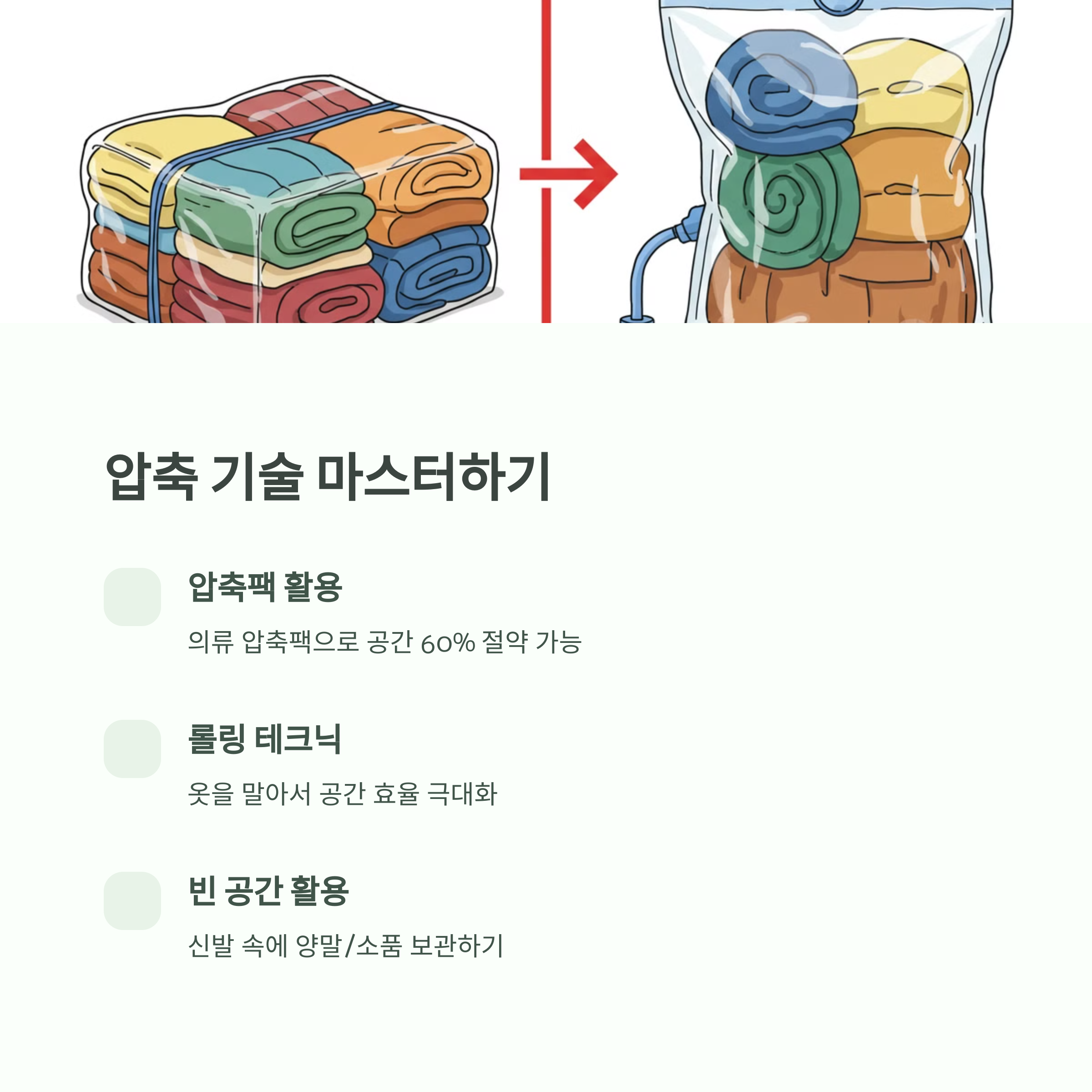 | 가방 꾸리는 포인트 | 빈 공간 없이 압축팩 활용해 효율성 높이기 |